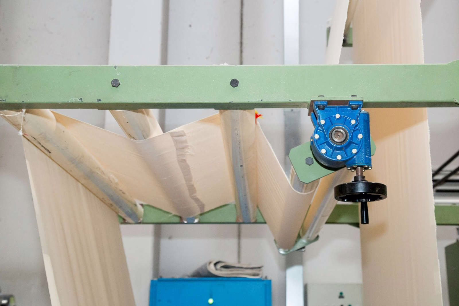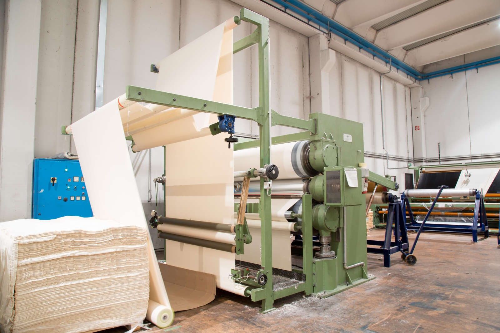 L’atelier de calandrage permet la finition des tissus à la main pour leur donner un aspect lisse et brillant.